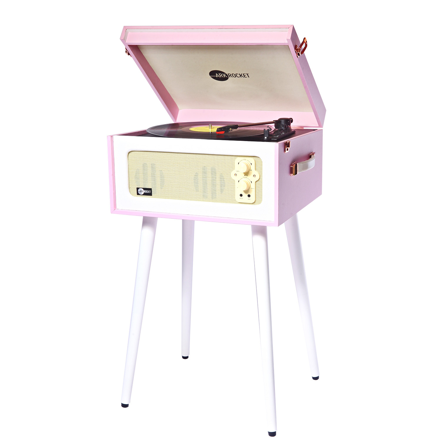 Discovery II Bluetooth Record Player Stand with 3-Speed Turntable - Pink / White