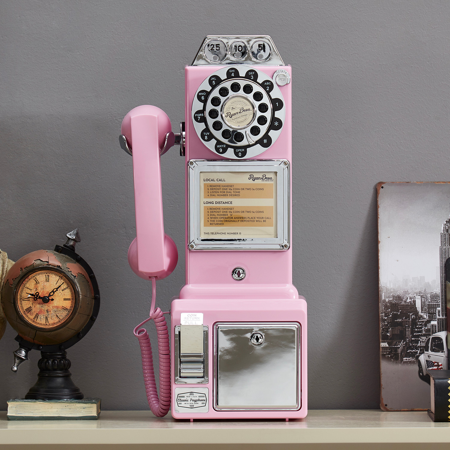 Ryan Bros. American Retro 1950's Payphone with Coin Bank (Pink)