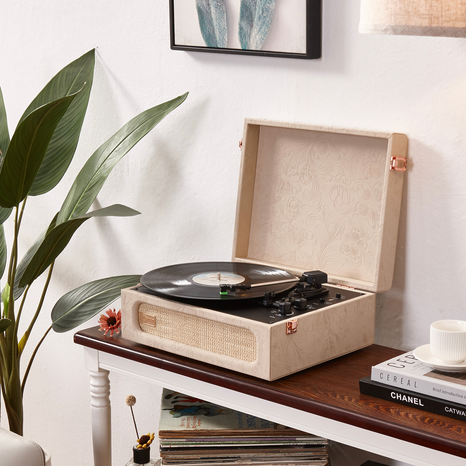 Coryphaeus Bluetooth Record Player + Record Storage Case (Flora Engraved)