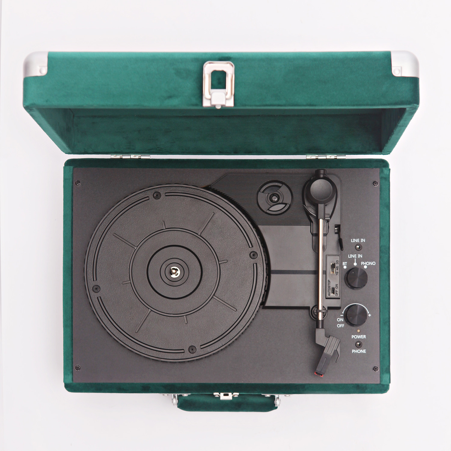 Curiosity Suitcase Bluetooth Turntable - Green Velvet
