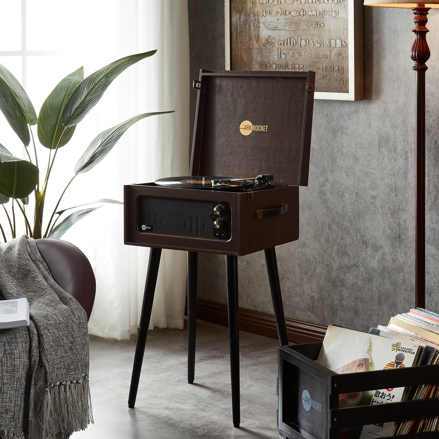 Discovery II Console 3-Speed Bluetooth Record Player with Legs(Brown)