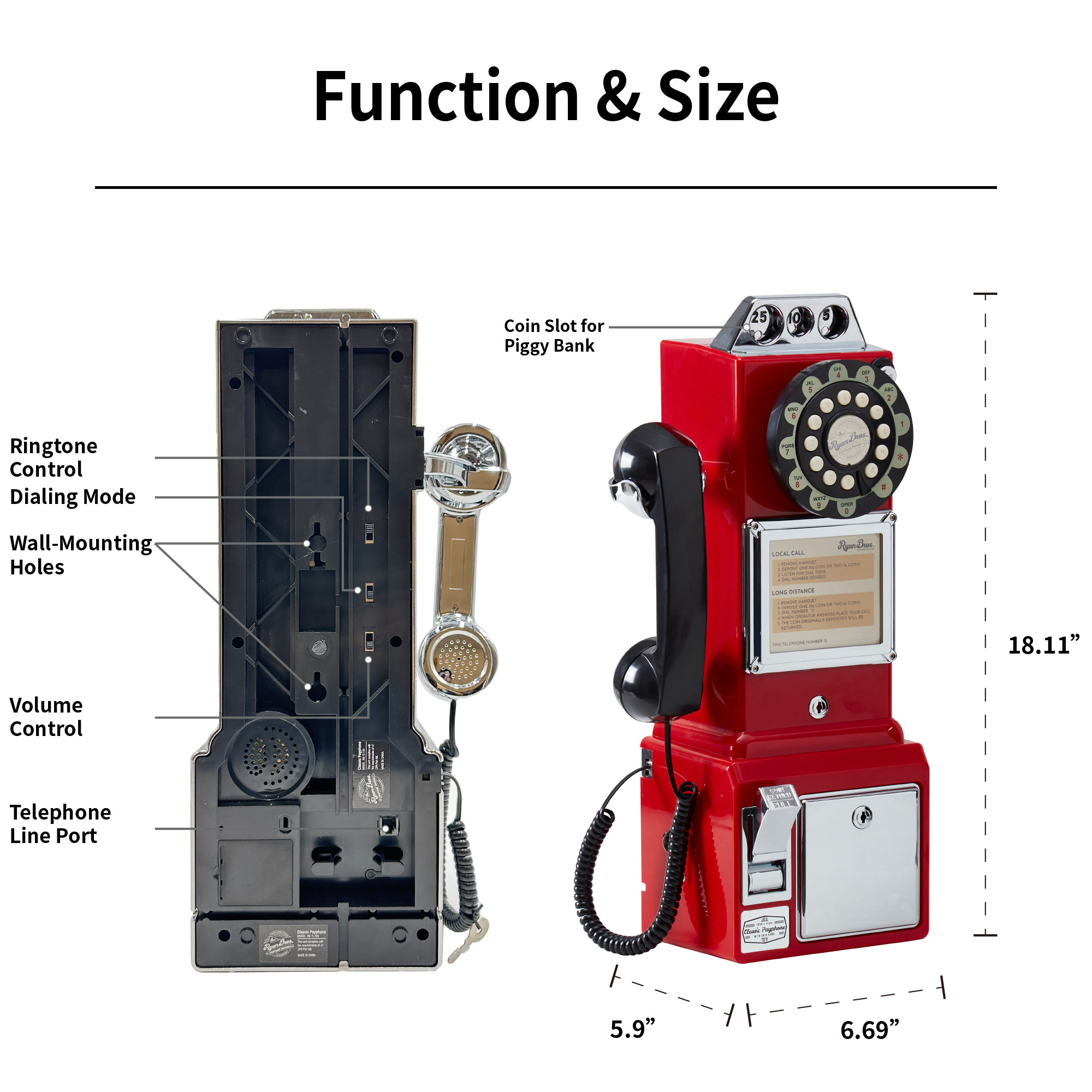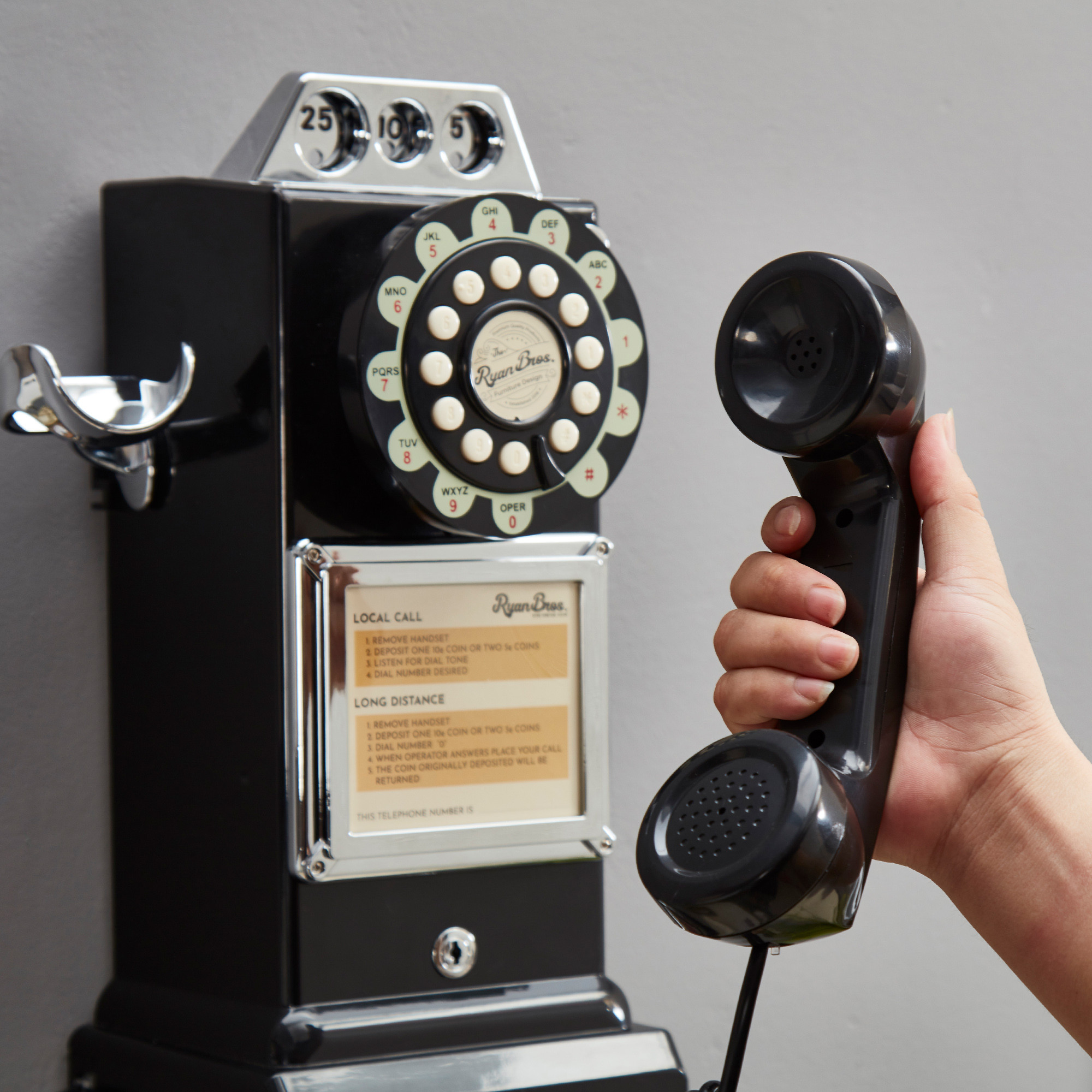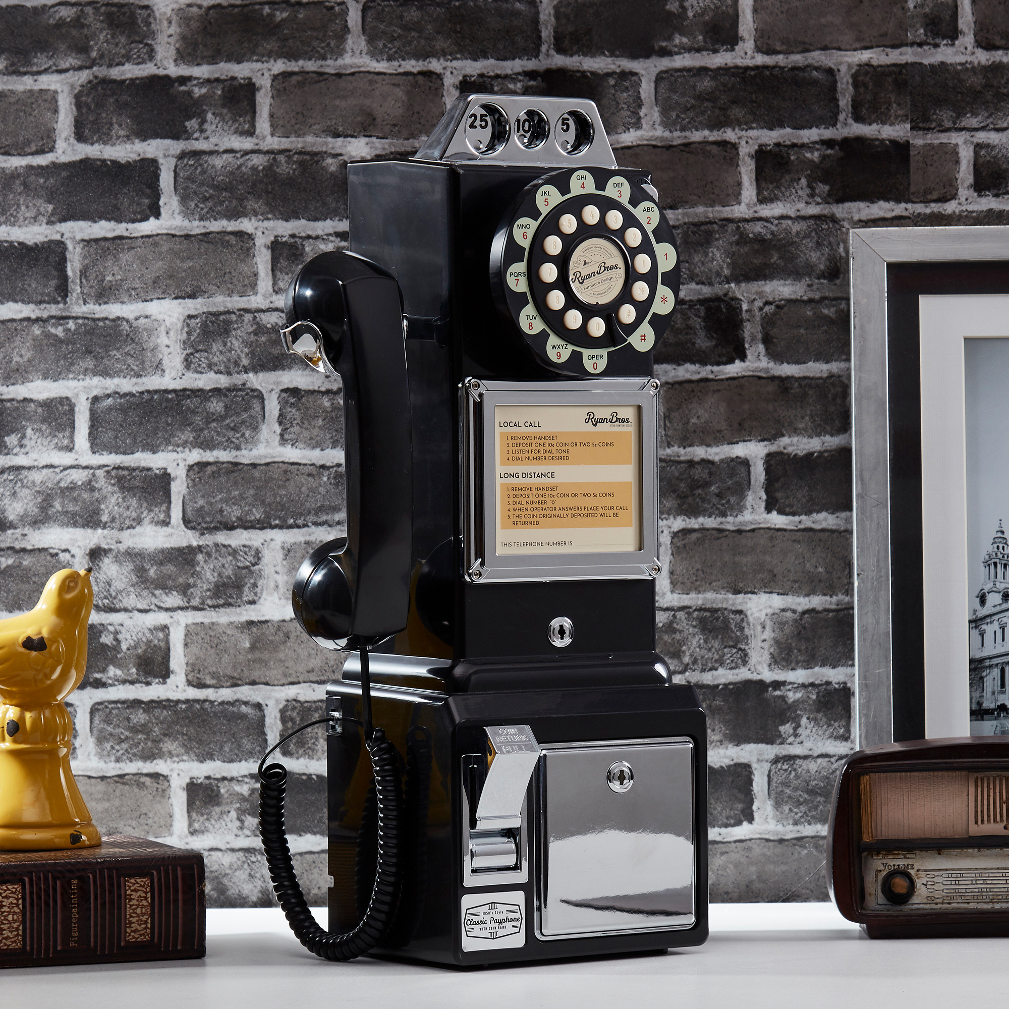Ryan Bros. American Retro 1950's Payphone with Coin Bank (Black)